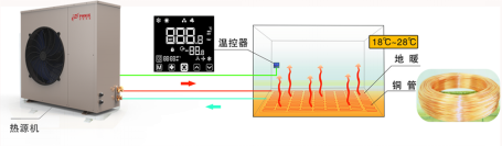 貴陽(yáng)芬尼空氣源無(wú)水地暖系統(tǒng)是通過(guò)消耗小部分電能驅(qū)動(dòng)壓機(jī)運(yùn)轉(zhuǎn),從空氣中吸收大量免費(fèi)的熱量,通過(guò)地埋毛細(xì)管以相變換熱的形式,直接將熱量傳遞給地板,然后通過(guò)地板表面均勻散發(fā)到室內(nèi),實(shí)現(xiàn)供暖的一個(gè)系統(tǒng)。那么空氣源無(wú)水地暖系統(tǒng)到底有哪些優(yōu)勢(shì)呢? 簡(jiǎn)單節(jié)能 直接實(shí)現(xiàn)了冷媒-地板-室內(nèi)的換熱形式,省略了中間換熱部件與相關(guān)閥件,減低了初投資。系統(tǒng)簡(jiǎn)單,無(wú)水泵、過(guò)濾器等,中間耗能部件少。省略水換熱的步驟,直接實(shí)現(xiàn)一次換熱,換熱效率更高。冷凝溫度同比降低10-15℃,大幅度提高機(jī)組綜合能效比,減少后期運(yùn)行費(fèi)用。 安全運(yùn)行,無(wú)風(fēng)險(xiǎn) 冷媒直接傳熱,無(wú)需擔(dān)憂防凍問(wèn)題。采用先進(jìn)的分液技術(shù),確保機(jī)組底部蒸發(fā)器溫度高于空氣露點(diǎn)溫度,保證機(jī)組底部不結(jié)霜,同時(shí)保證化霜過(guò)程底部排水通暢。 低溫&超低溫 智能化霜 機(jī)組采用壓力滑移除霜技術(shù),依據(jù)壓力與環(huán)境溫度的變化來(lái)進(jìn)行判斷,實(shí)現(xiàn)有霜化霜,無(wú)霜不化霜,從而減少耗能。